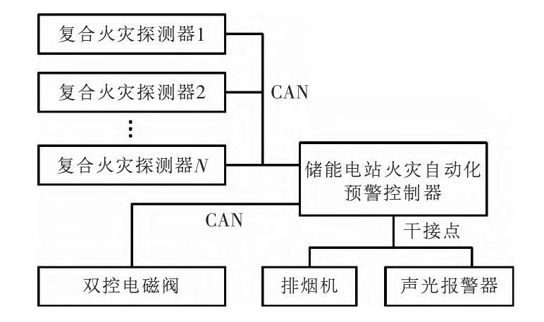 火灾自动化预警控制器处理复合火灾探测器集成的多种传感器信息,得到储能电站火灾自动化检测结果,提升火灾自动化预警的可靠性与稳定性。